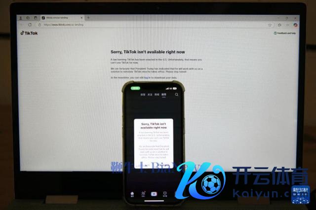 1 月 19 日凌晨,好意思国阿灵顿,TikTok 手机把握尺度和官网页面的弹窗告示败露"抱歉,TikTok 现已不成用。"图源:新华社