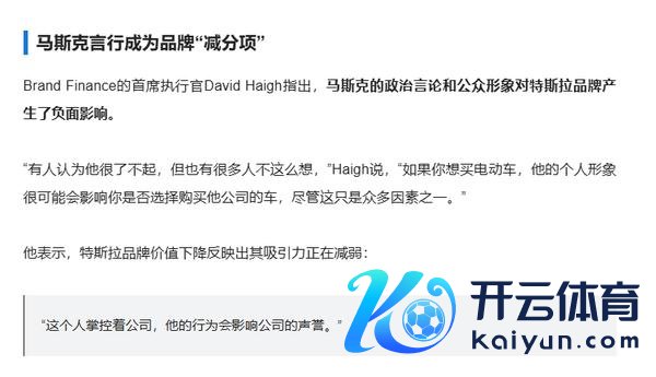 敷陈指出,特斯拉品牌价值的大幅下降不仅受到居品线老化的影响,还与马斯克的言行密切相关。马斯克的言论和公众形象对特斯拉品牌产生了显赫的负面影响。Brand Finance 的首席施行官 David Haigh 强调,尽管特斯拉在好意思国市集仍保抓着高诚意度,但在"计议购买"、"声誉"和"推选度"等要道方案上,特斯拉在公共主要市集的得分均有所下降。